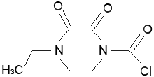 全 称:4-乙基-2,3-二氧-1-哌嗪甲酰氯 C A S:59703-00-3 分 子 式:C7H9N2O3Cl 分 子 量:204.61 结 构 式: